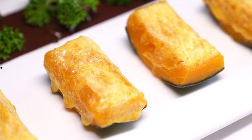 2. 南瓜去皮切块,备用。